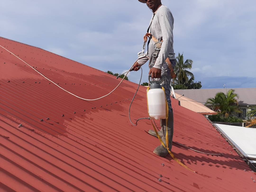Pour lutter contre la chaleur intense sous les toitures en tôle, Confortoit applique une peinture spéciale thermorégulatrice. Cette peinture abaisse la température sous la tôle jusqu’à 15°C, offrant un meilleur confort à l’intérieur de la maison tout en réduisant vos besoins en climatisation. Elle protège aussi durablement contre la corrosion.
